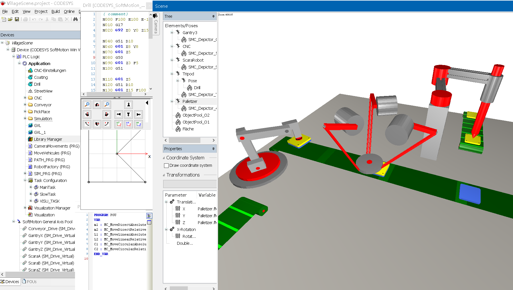 CODESYS Depictor是CODESYS的一個附加產(chǎn)品,它可以直接在上位的CODESYS開發(fā)系統(tǒng)中描繪整個機械加工過程的三維場景。 這些三維仿真場景可以有效地幫助開發(fā)人員和培訓(xùn)人員直觀地了解生產(chǎn)過程中各個部分的功能及相互的關(guān)系。